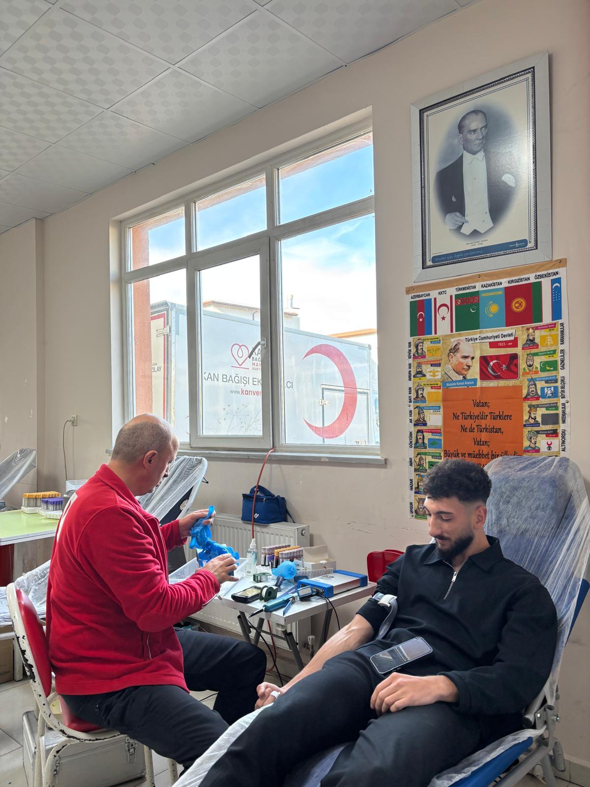 Cumhuriyet Sosyal Bilimler Meslek Yüksekokulu, toplumsal sorumluluk bilinciyle hareket ederek önemli bir etkinliğe daha imza attı. Yüksekokul Müdürü, Müdür Yardımcıları, akademik personel, idari personel ve öğrencilerin katılımıyla düzenlenen kan bağışı kampanyasında, Türk Kızılayı’na destek verildi.Yüksekokulumuzda Kızılay’ın mobil ekibi tarafından kurulan stantta gerçekleştirilen kan bağışı etkinliğine, öğrenciler yoğun ilgi gösterdi. Etkinlik kapsamında, Kızılay yetkilileri kan bağışının önemi hakkında bilgilendirmelerde bulunarak, düzenli kan bağışının hayat kurtarıcı rolüne dikkat çekti. Katılımcılara teşekkür eden Kızılay ekibi, Cumhuriyet Sosyal Bilimler MYO ailesine duyarlılıkları ve katkıları için şükranlarını iletti.