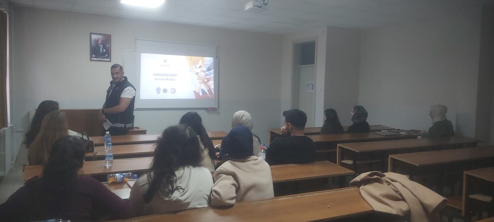 Yüksekokulumuz 1.sınıf öğrencilerine yönelik Sivas Emliyet Müdürlüğü tarafından 20-22 Nisan 2026 tarihlerinde bağımlılıkla ilgili eğitim verilmiştir.